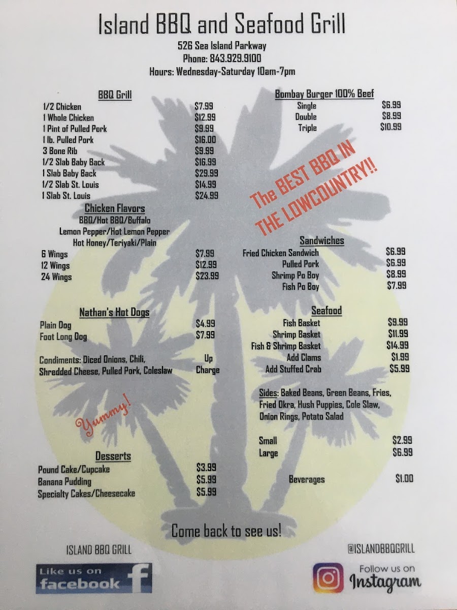 Welcome to Island BBQ and Seafood Grill, where smoky goodness meets coastal charm! Nestled at 520 Sea Island Pkwy, St Helena Island, SC, this culinary gem is renowned for its mouthwatering BBQ and fresh seafood offerings.